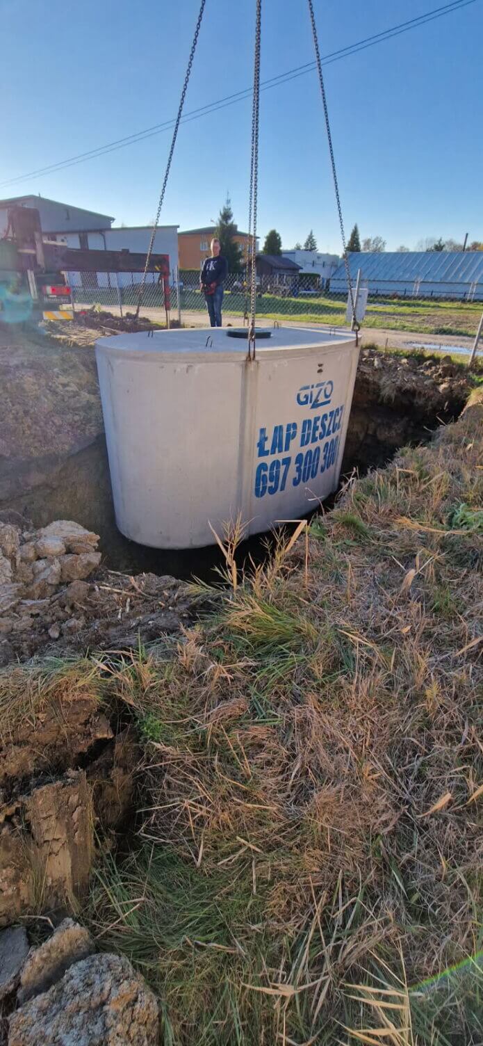 Kolejny tydzień kolejna realizacja. Tym razem prezentujemy Państwu posadowienie zbiornika 15000l na obszarze miasta Białystok. Nasz klient podjął świadomą decyzje motywując posadowienie zbiornika przyszłymi niższymi kosztami za pobór wody z sieci oraz obniżkę podatku „od deszczu”. Należy pamiętać dodatkowo że monolityczne betonowe zbiorniki gwarantują brak przesiąkania wód gruntowych. Dzięki temu wodę ze zbiorników można wykorzystywać jako wodę techniczną do użycia w domu lub podlewania ogródka i mycia samochodów. Brak mieszania się wód z monolitycznego betonowego zbiornika i wód gruntowych jest częstym problemem zbiorników plastikowych. W monolitycznym betonowym zbiorniku na wodę deszczową Gizo taki problem nie występuje.